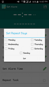 This app has a special ability to repeat the same job again & again. For that, we just have to put ticks in front of days that we want to execute the job with relevant time.