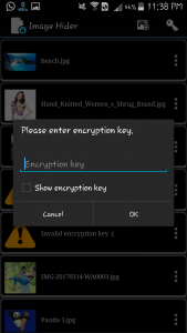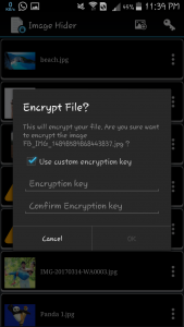 We can use this app to Encrypt any picture that we want. It is essential to give a password as an encryption key for that purpose. Also if you want to see that original picture again, you have to provide the same Encryption key that you previously used to view it. It’s impossible to discover initial photograph for anyone who doesn’t know the Encryption key 😉